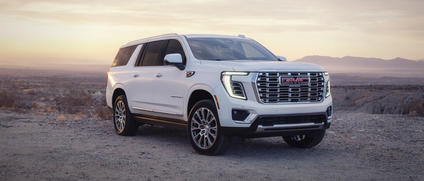 Premium materials, including perforated leather-appointed seating, adorn the interior of the GMC Yukon XL, creating an atmosphere of sophistication and comfort. The interior is thoughtfully designed with convenience in mind, offering features such as power-adjustable front seats, tri-zone automatic climate control, and ample storage solutions throughout the cabin. On the exterior, the GMC Yukon XL makes a bold statement with its sculpted lines, prominent grille, and distinctive LED lighting. Choose from a range of eye-catching color options and wheel designs to personalize your GMC Yukon XL and make it truly your own.